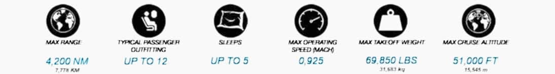 | * NBAA IFR theoretical range. Actual range will be affected by ATC routing,> operating speed, weather, outfitting options and other factors | |